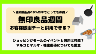 おでかけ 無印良品週間とイオンのお客様感謝デーは併用できる?マルコとマルオや株主優待の併用についても調査! 無印良品週間とイオンのお客様感謝デーは併用できるのかな?マルコとマルオの10日間はどうなのかな?無印良品の商品がお得にな... 2025.10.22 おでかけ