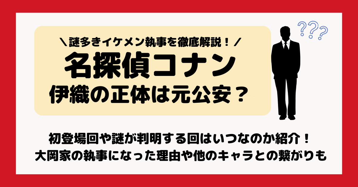 名探偵コナンに登場する伊織無我は元公安で、紅葉との出会いにより大岡家の執事になったことが明らかになりました。