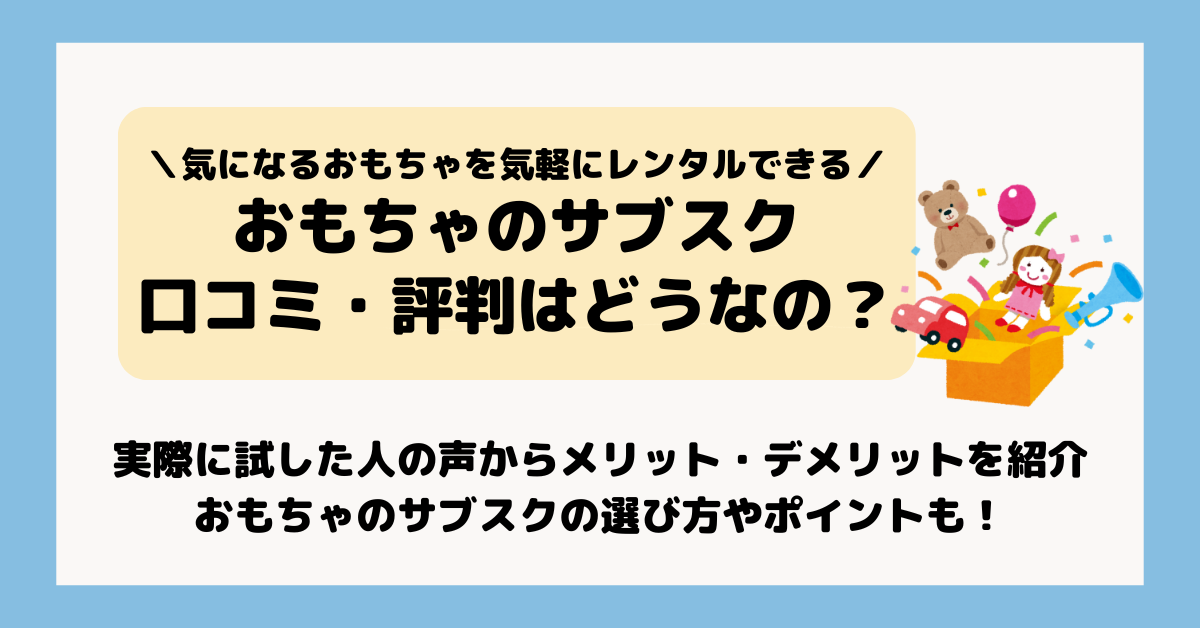 この記事では、おもちゃのサブスクとはいったいどのようなサービスなのか、そして実際に体験した人の口コミから分かるメリットやデメリットをまとめてみました。