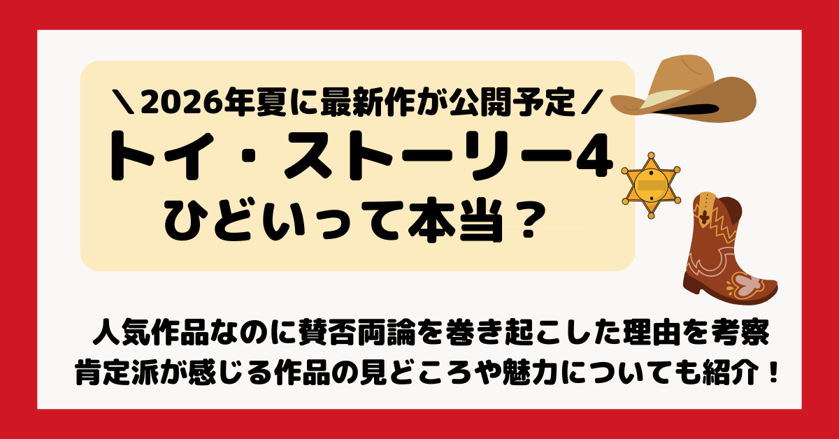 この記事では、トイ・ストーリー4がなぜ「ひどい」と言われるのか、理由を考察するとともに、肯定的な感想も紹介しながら、作品の魅力を改めて考えてみたいと思います。